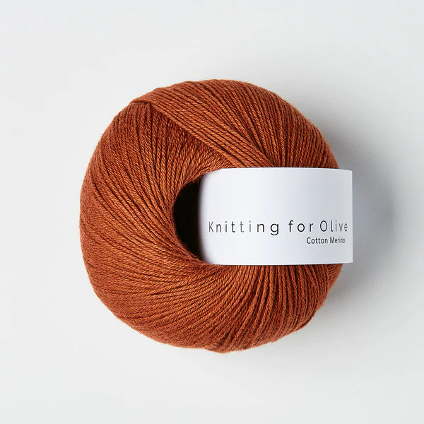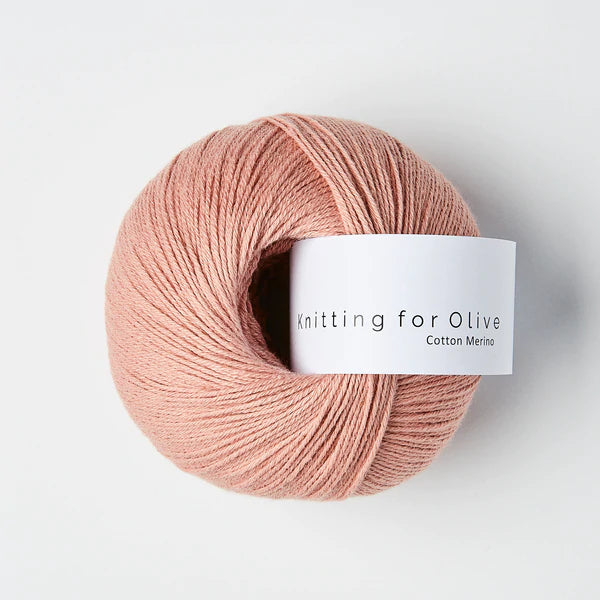 This fingering weight 70% Organic Cotton / 30% Merino is perfect for light summer wear and baby clothes. Machine dyed for solid color. Dyed by Knitting for Olive in Denmark to support their fantastic patterns!