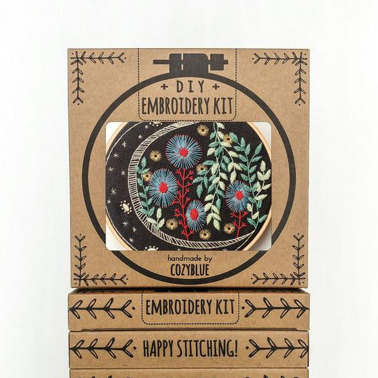 Cozyblue embroidery kits include everything you need to create your own hand embroidered hoop. The pattern design is pre-printed on 100% cotton fabric, so there's no need for transferring or tracing. just pop the fabric in the hoop, thread your needle, and start stitching!