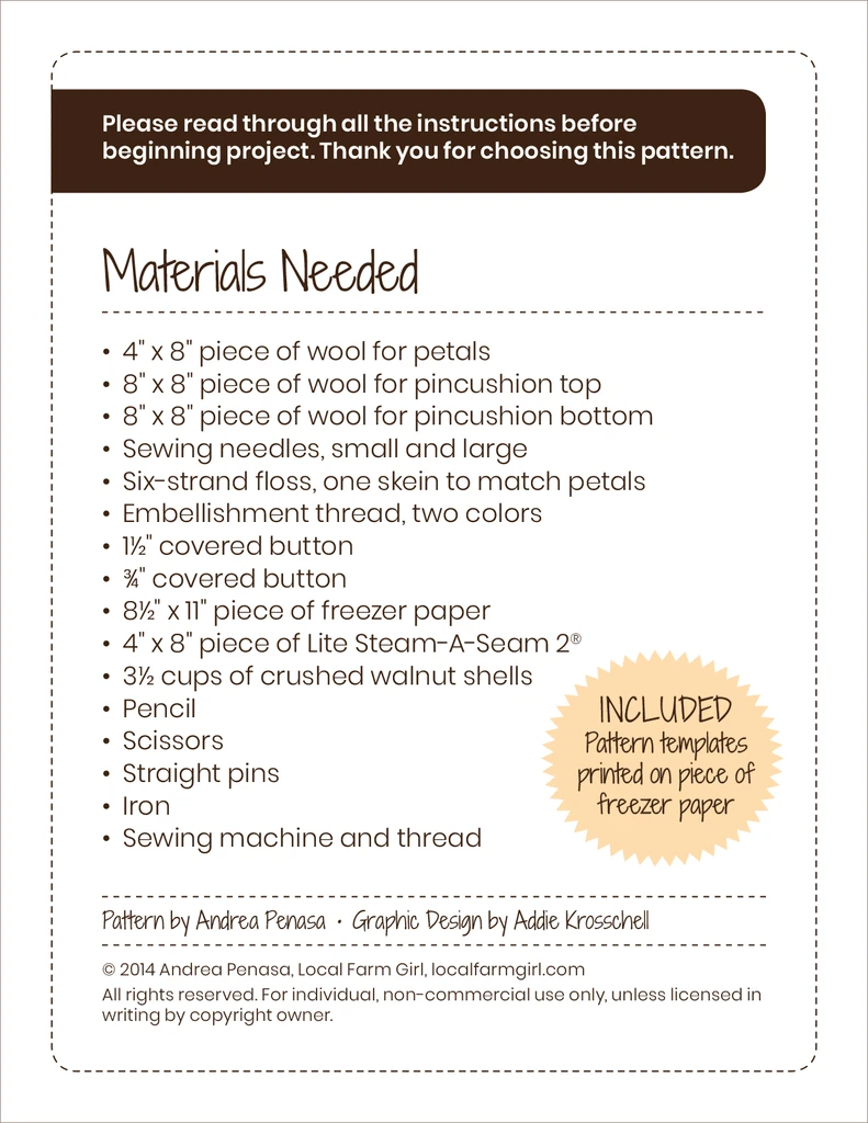 Paper Pattern - Petals Pincushion