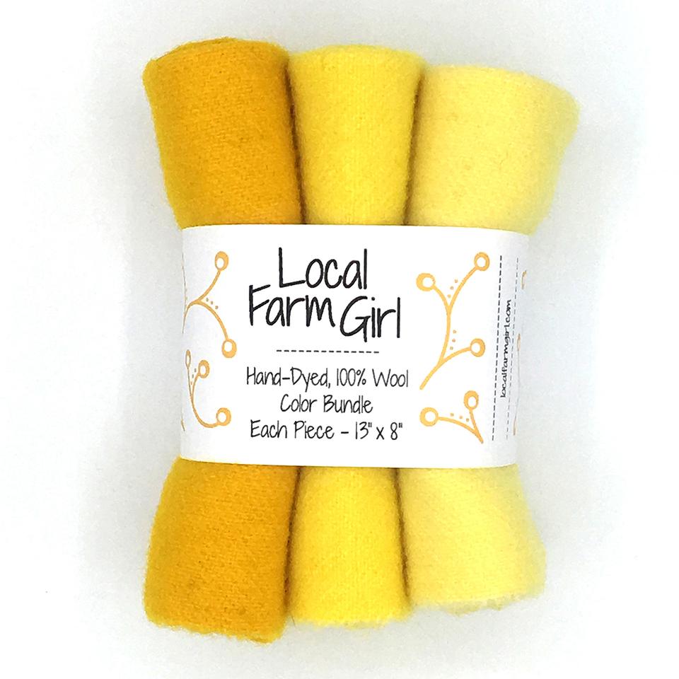 -Mini Bundles include three 6.5” / 8” pieces of wool in a color family.