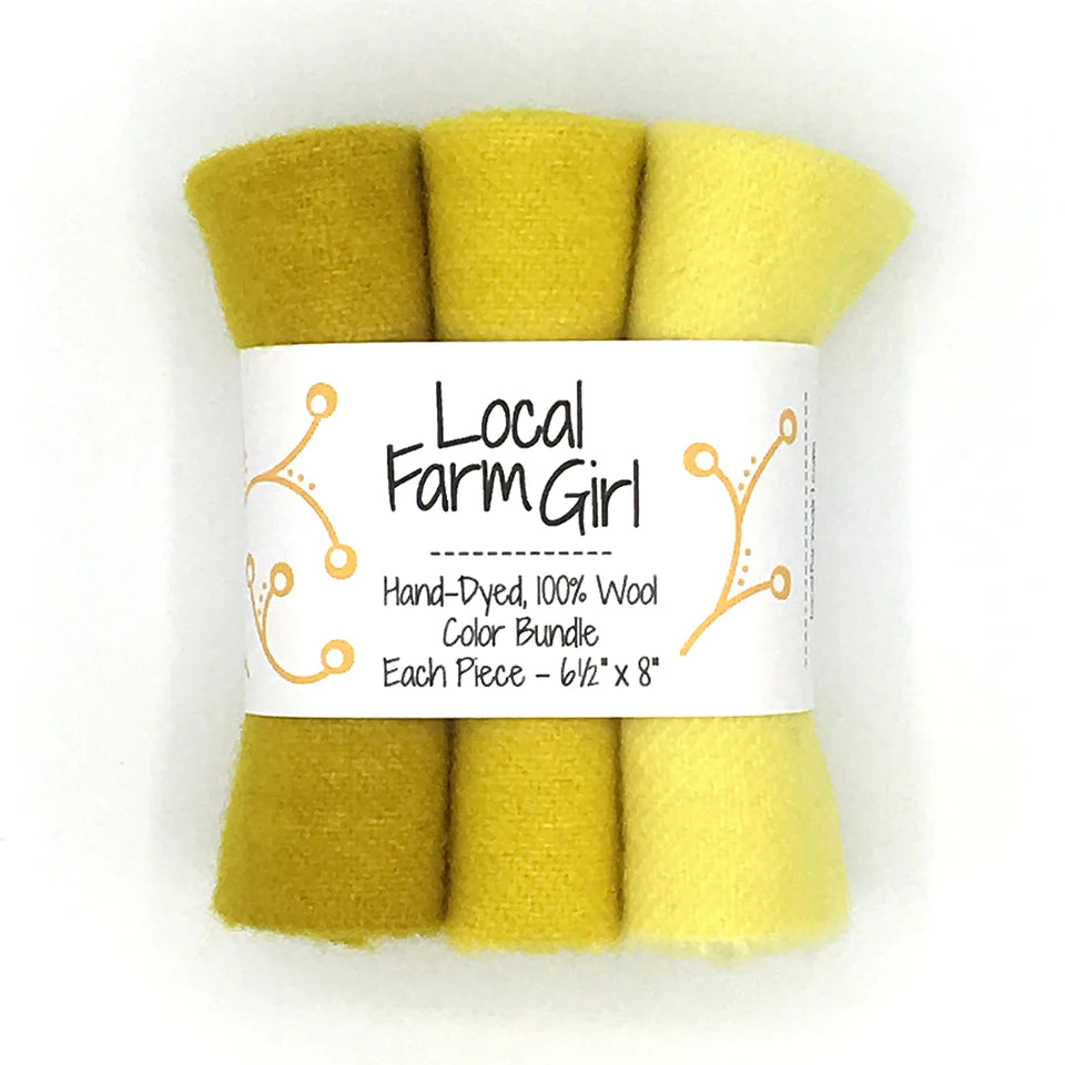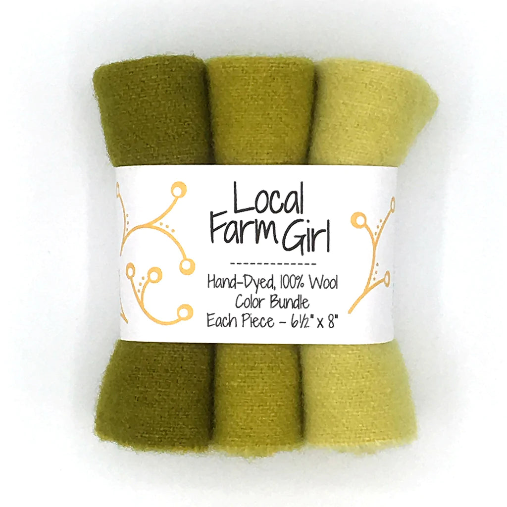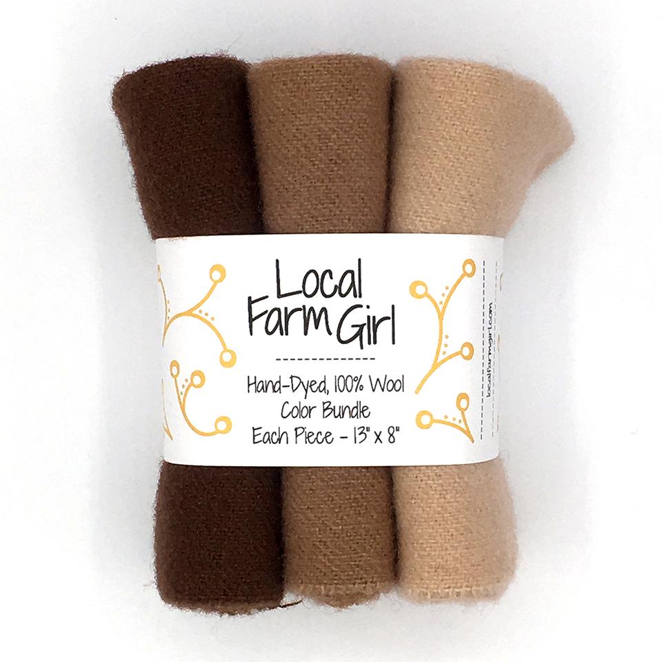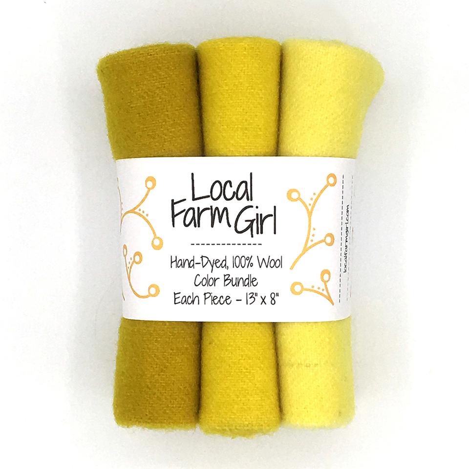-Classic Bundle include three 13" x 8" pieces of wool in a color family.
