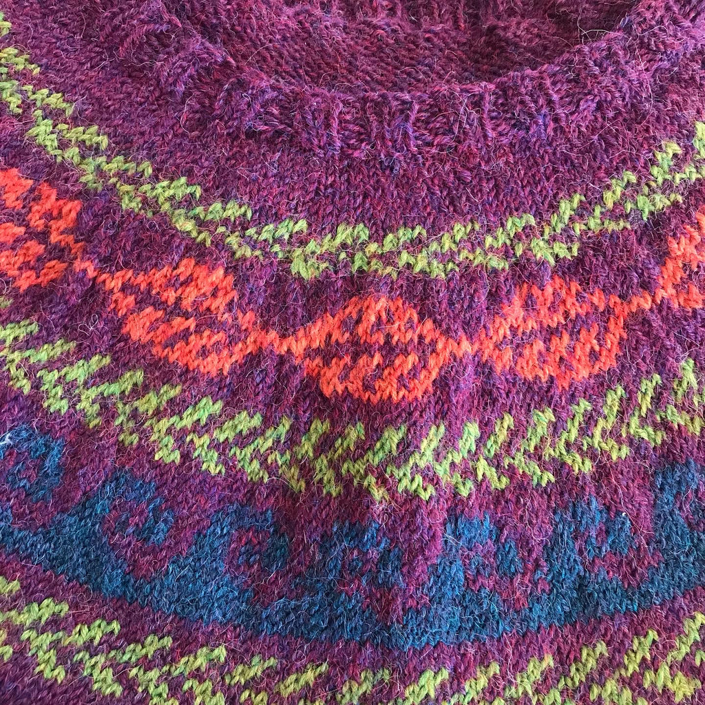 Mother Superior sparkles with the elements of our beloved landscape. Ferns, trees, and waves along the North Shore inspired this pullover pattern designed by Mary Ellen Ashcroft. It is knit in the round from top down and worked seamlessly from the top, with short rows shaping the neck and stranded yoke. The sleeves and body are knit separately in the round.