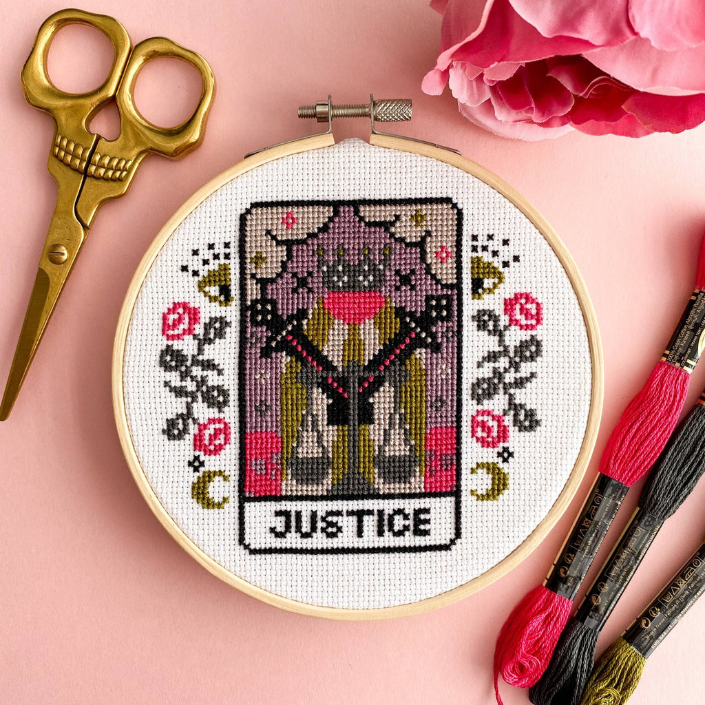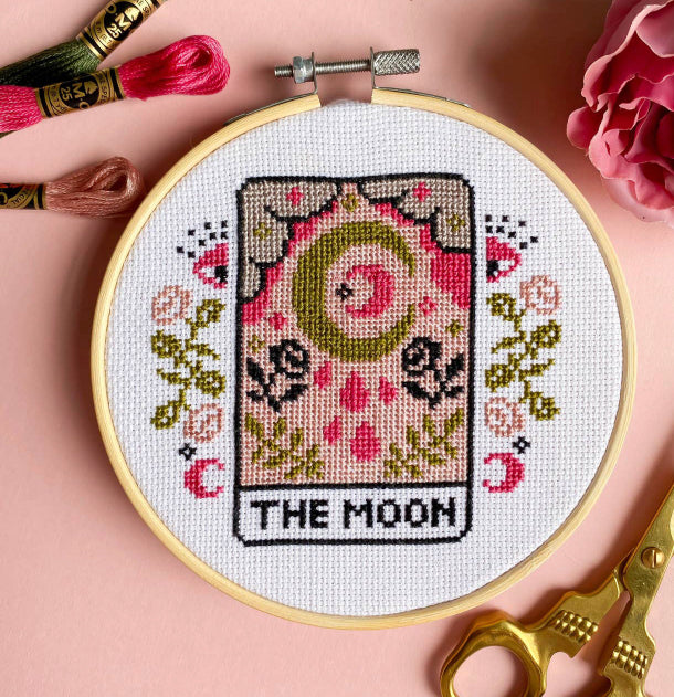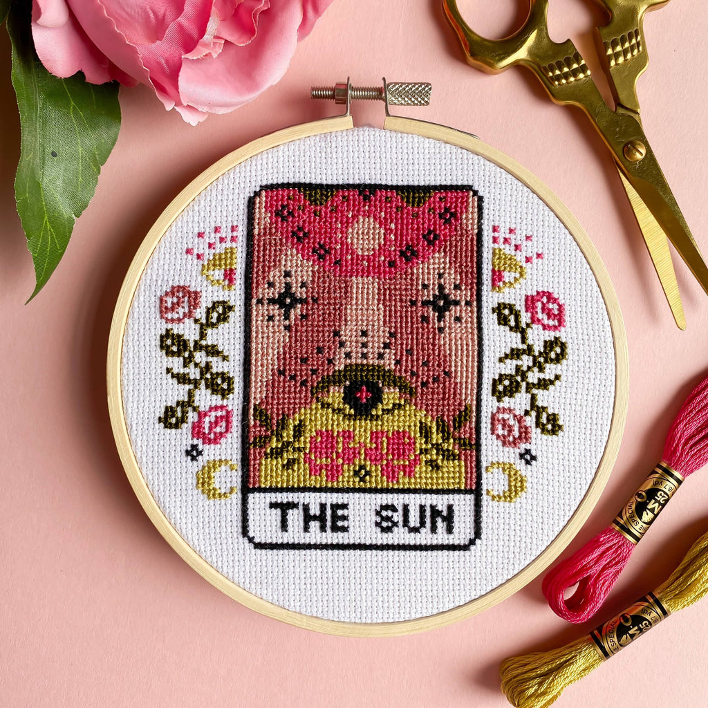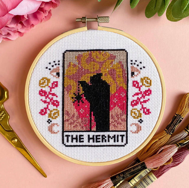 Each Tarot Kit is inspired by a specific tarot card and comes with a fully coordinated color palette of DMC embroidery threads, meaning the kits looks beautiful on their own and even more impressive together! This kit is packed with a whole bunch of gorgeous design elements, including snakes, roses, stars, and lots of lovely floral elements.