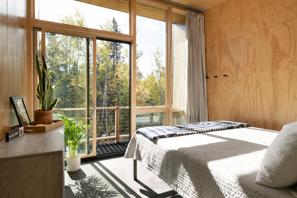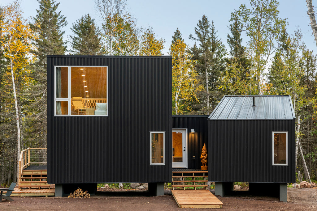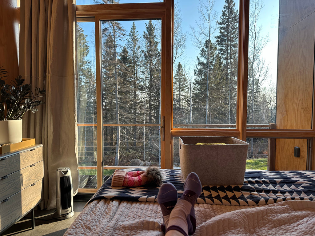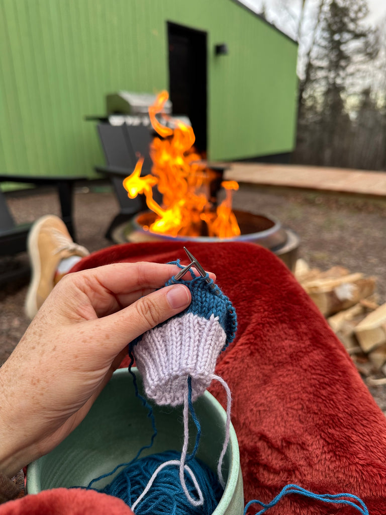 We'll stay at Ski Hill Cabins and Saunas, in Lutsen, MN. These Nordic modern cabins offer spacious living rooms where we cozy up to knit, full kitchens, two full bathrooms, fire circle, and private saunas. Accommodations include main-floor single room (California king bed), main floor bunk room (queen above queen bunk beds), and shared loft (two full beds in loft accessible by ships ladder).